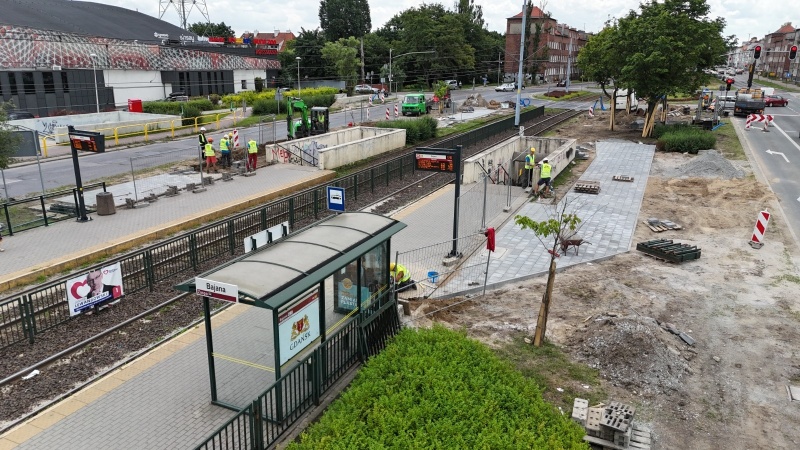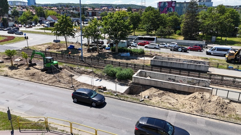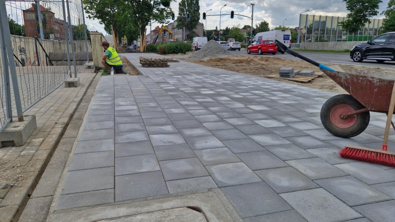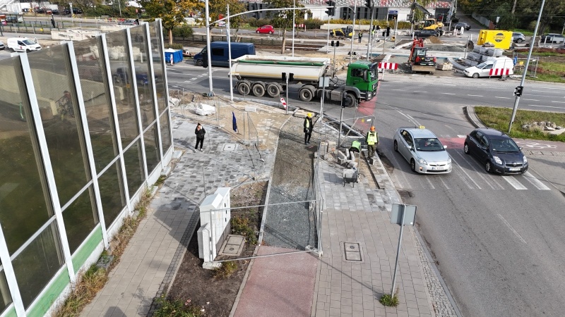 Obecnie wykonywane są m.in. chodniki i dojścia na peron tramwajowy.