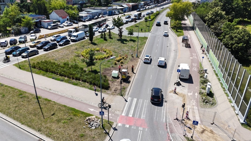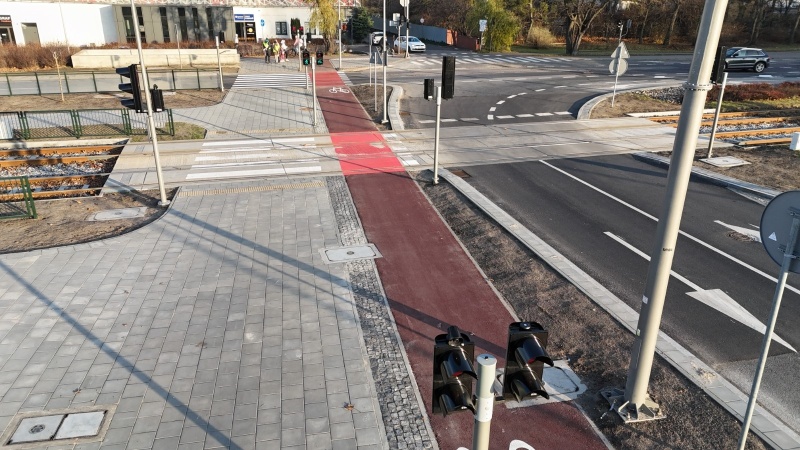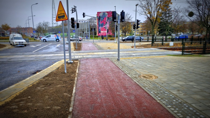 Wykono część dojść do przyszłego przejścia, a także zamontowano elementy sygnalizacji świetlnej. W najbliższych dniach planowane jest układanie masy pod drogę rowerową.