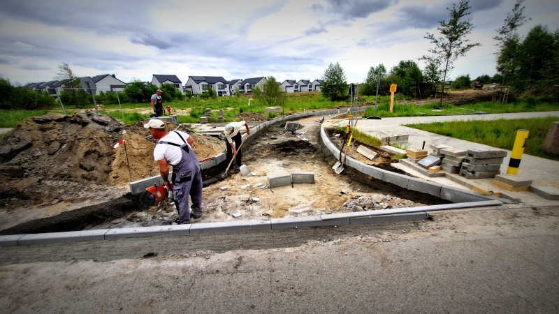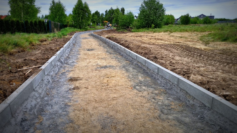 Rozpoczęto prace ziemne pod przyszłą drogę rowerową, Wykonawane są kraweżniki i podbudowy pod przyszłą trasę.