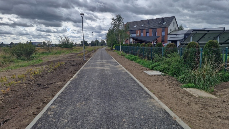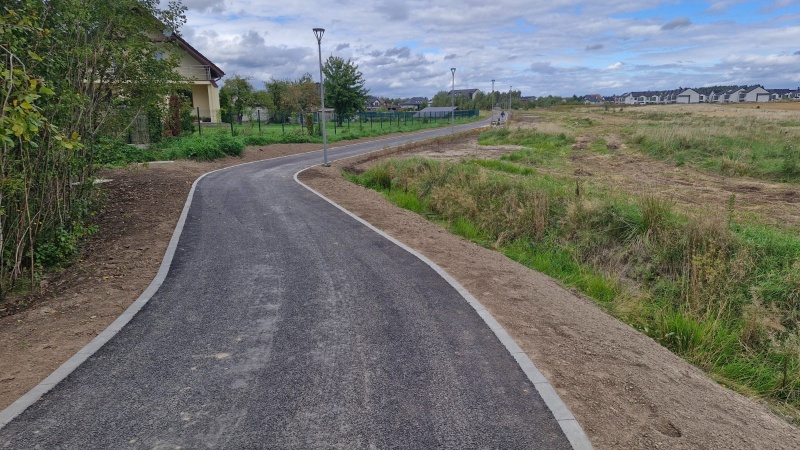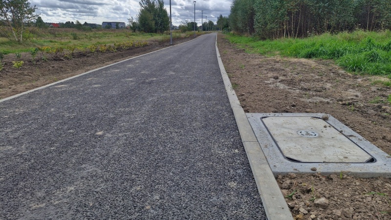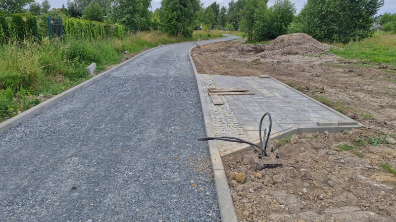 Na części drogi już ułożono nawierzchnię i przygotowano miejsce, w którym staną ławki. W najbliższym czasie zamontowane zostaną słupy oświetleniowe.
