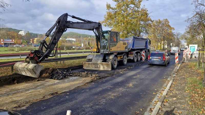 Rozpoczęto realizację zadania. Wykonawca obecnie prowadzi rozbiórki nawierzchni jednego z pasów jezdni.