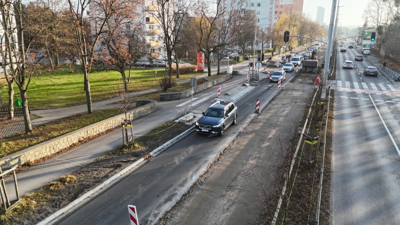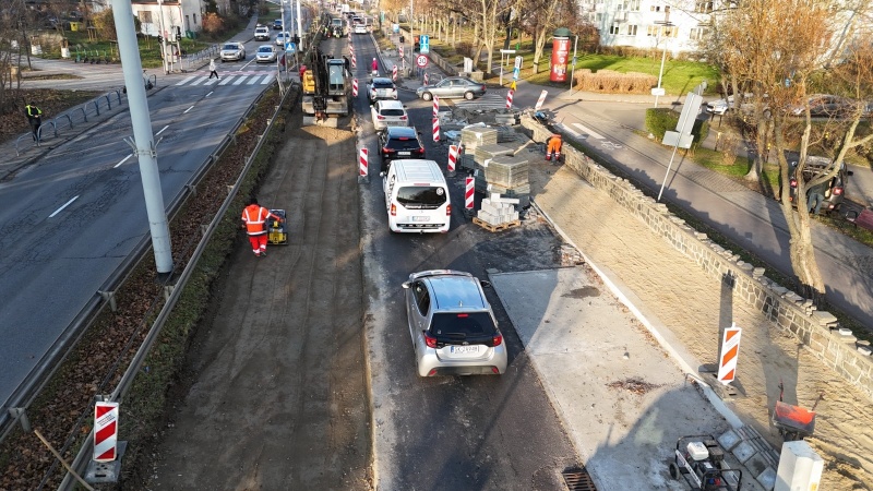 Ułozono nawierzchnię na prawym pasie jezdni. Obecnie prowadzone są rozbiórki konstrukcji lewego pasa.