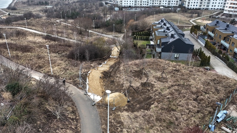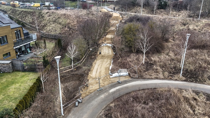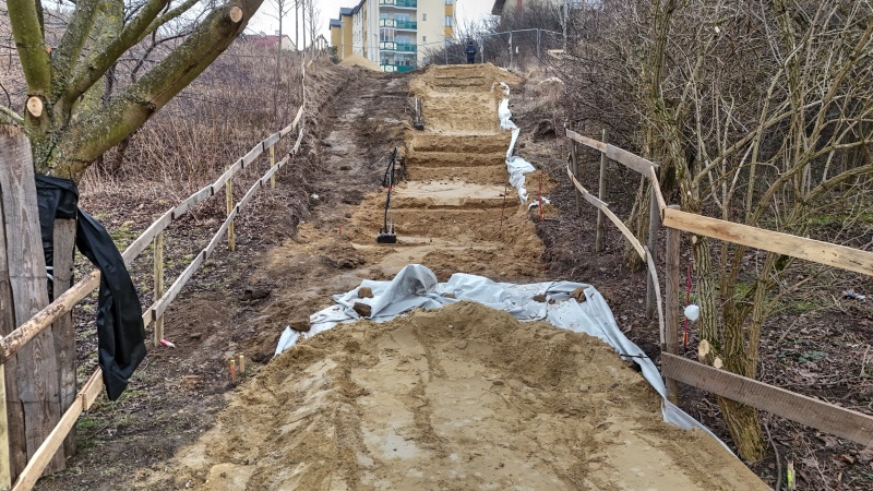Trwają prace ziemne związane z wykonaniem konstrukcji schodów i fundamentów słupów oświetleniowych.