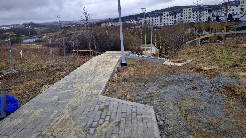 Wykonano już konstrukcję schodów i zamontowano słupy oświetleniowe.