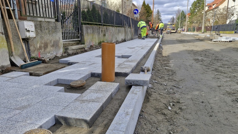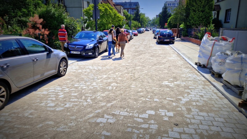 Na Zamenhofa prace są już mocno zaawansowane — na części ulicy ułożono już kostkę brukową oraz nowe chodniki. Na Żeleńskiego zdjęto już starą nawierzchnię, teraz montowane są nowe krawężniki.