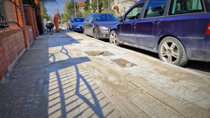 Na ul. Żeleńskiego trwają prace związane z układaniem nowej nawierzchi.