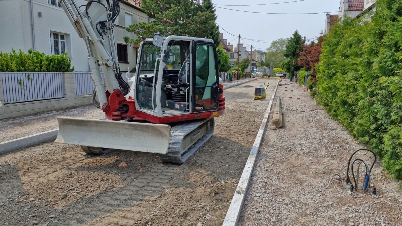 Na ul. Zamenhofa na ukończeniu są prace ziemne. Wykonywane są chodniki wraz krawężnikami. Wykonawca przygotowuje się do układania nawierzchni jezdni.