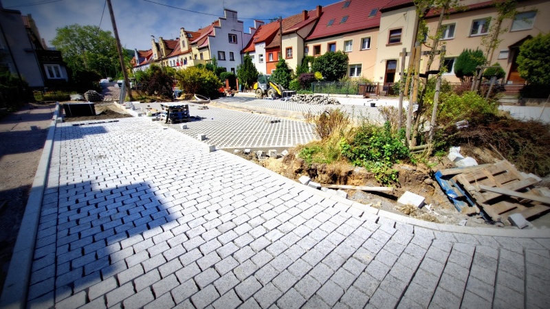 Na ul. Zamenhofa i ul. Żeleńskiego prace zmierzają ku końcowi. Układana jest nowa nawierzchnia z kostki.