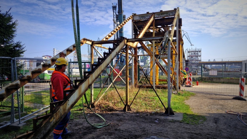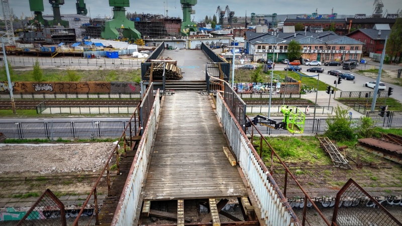 Kładka dla pieszych, która prowadzi na peron stacji SKM, ale i tereny stoczniowe, zostanie rozebrana, a w jej miejsce wybudowany zostanie nowy obiekt.