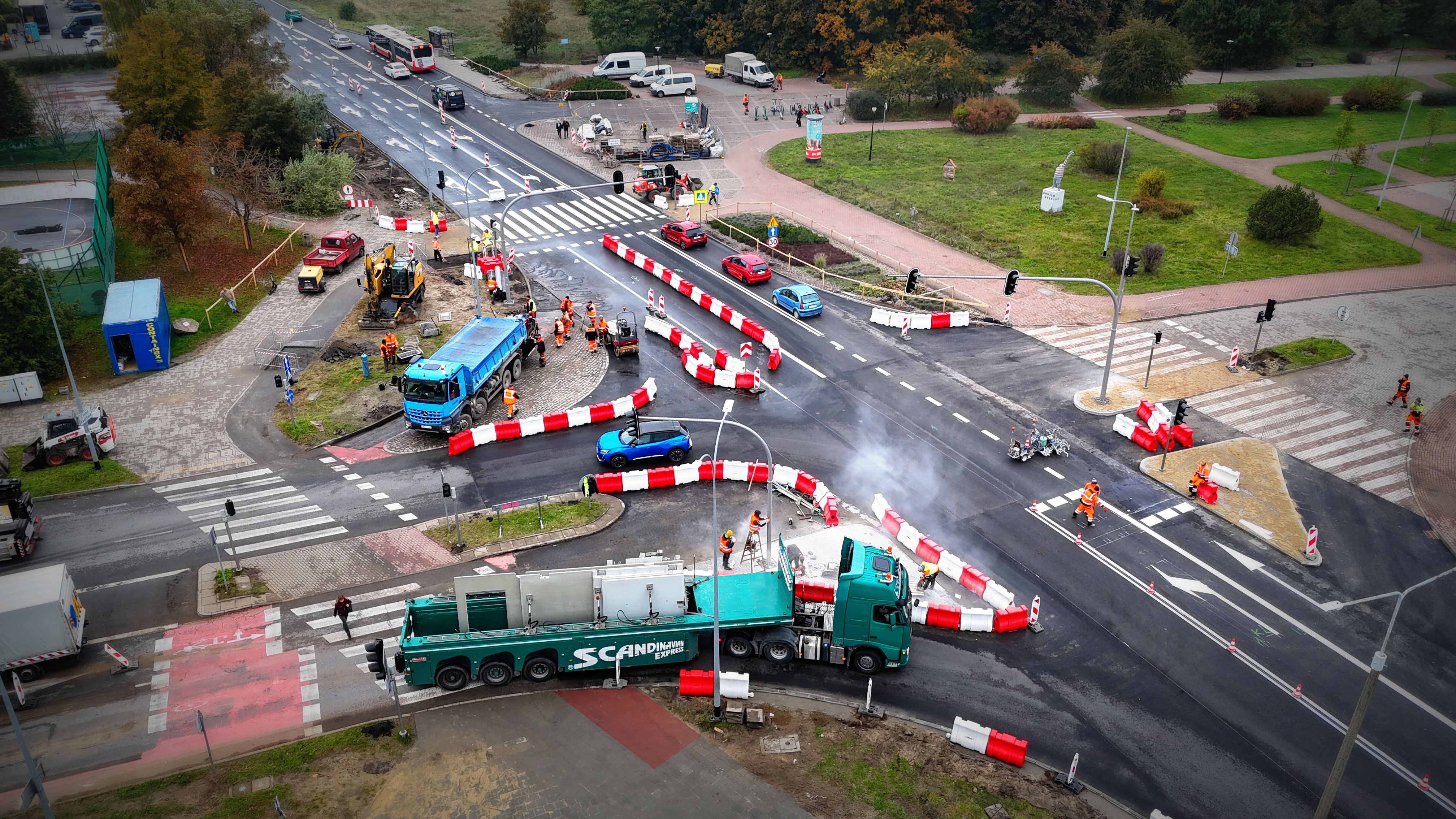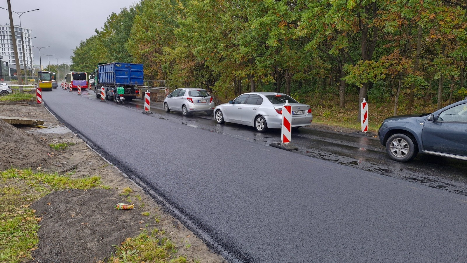 Układanie mas bitumicznych na jezdni jest na ukończeniu. W najbliższych dniach prowadzone będą dalsze prace na zjazdach. Co istotne, udostępnienie ruchu w obu kierunkach na Czarnym Dworze nie oznacza zakończenia wszystkich robót. Prace wykończeniowe będą na budowie kontynuowane w listopadzie.