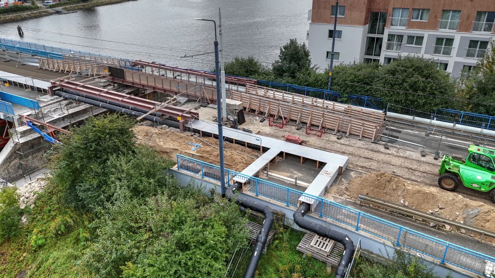 W najbliższych dniach zakończy się montaż tymczasowych kładek nad wykopami oraz ogrodzenia w rejonie sieci ciepłowniczych i wodociągowych. Równolegle kończone są prace torowe przy ul. Głębokiej, które poprawią dostępność przystanków tramwajowych i skrócą czas dojścia dla pasażerów.