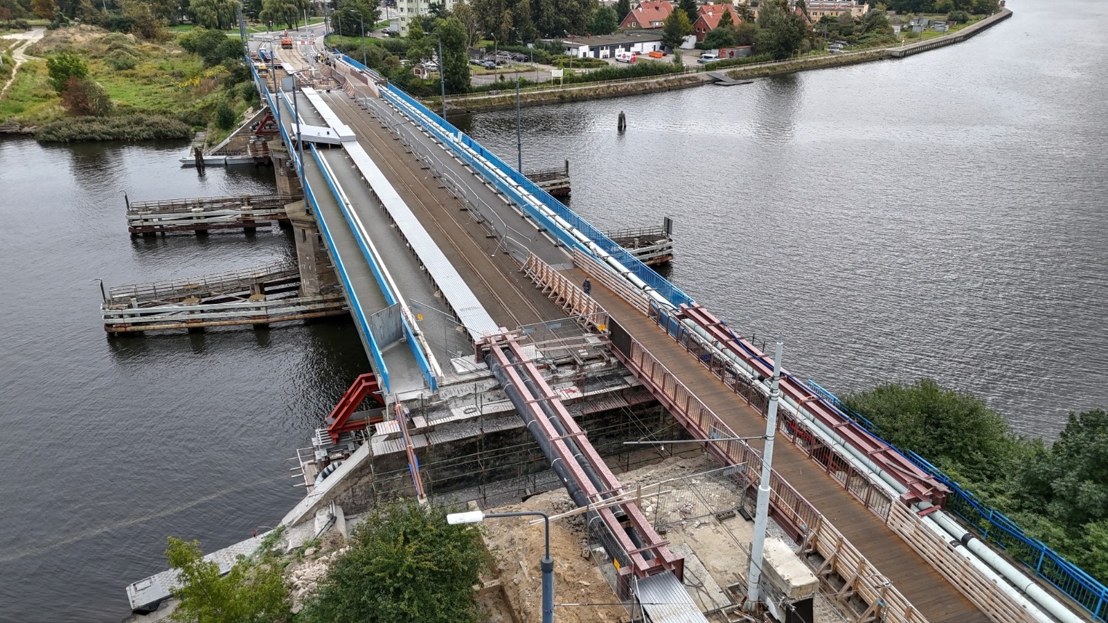 – Dzisiaj zamykamy etap robót związany z decyzją nakazową. W najbliższych dniach skoncentrujemy się na wykonaniu i montażu specjalnych kładek pieszo-rowerowych, które pojawią się nad wykopami po obu stronach mostu. Kładki zostaną wyposażone w odpowiednią infrastrukturę i uzbrojenie, a ich konstrukcja umożliwi bezpieczny ruch pieszych i rowerzystów, bez konieczności zsiadania z roweru - podkreśla Krzysztof Małkowski, dyrektor Dyrekcji Rozbudowy Miasta Gdańska. - Równolegle kończymy budowę rozjazdu torowego w rejonie ulicy Głębokiej. Pozwoli to na zlokalizowanie przystanku tramwajowego bliżej mostu, co nie tylko skróci czas dojścia, ale też znacząco poprawi komfort korzystania z komunikacji miejskiej. Trwa również postępowanie przetargowe związane z przebudową całego obiektu mostowego – jesteśmy na etapie rozstrzygania ofert i zmierzamy do podpisania umowy z wykonawcą na przełomie lipca i sierpnia. Przebudowa będzie kompleksowa: po wcześniejszym podparciu – a konstrukcja wsporcza już została wykonana – rozbierzemy przyczółki, wzmocnimy podłoże i odbudujemy je. Odmienimy również otoczenie mostu. Pojawi się nowa zieleń, a całość zyska nową jakość – zapowiada dyrektor Małkowski.