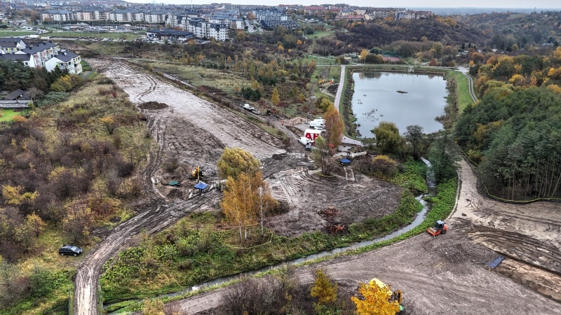 Wykonawca, firma Strabag, ma już za sobą tyczenie geodezyjne i organizację zaplecza budowy. Pierwszy etap prac postępuje na terenach poza obowiązującym ruchem drogowym i nie powoduje utrudnień dla mieszkańców.
