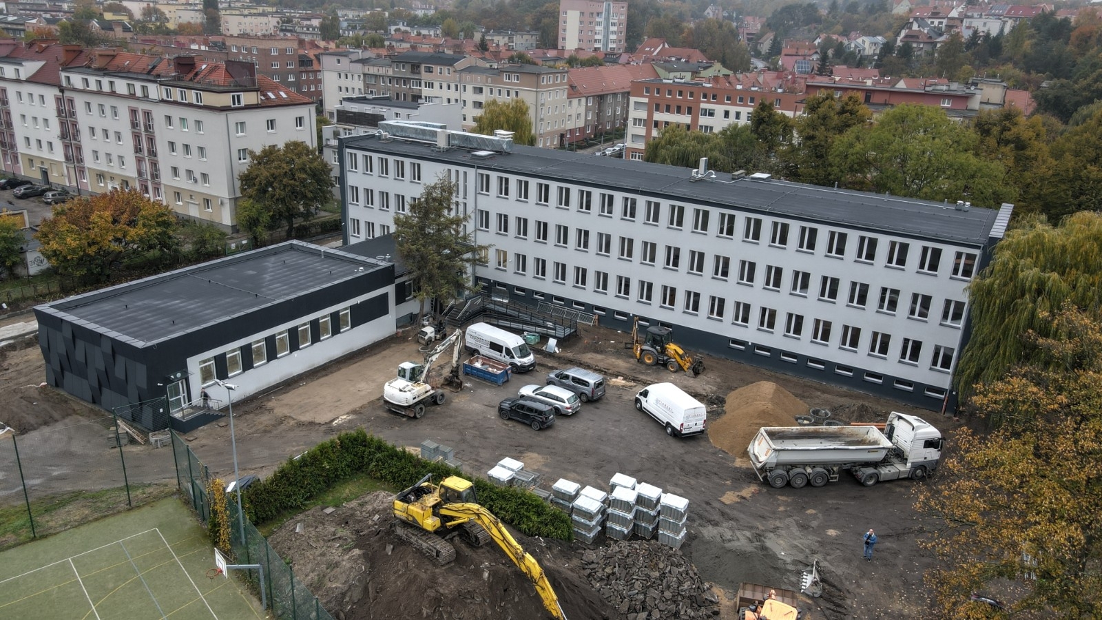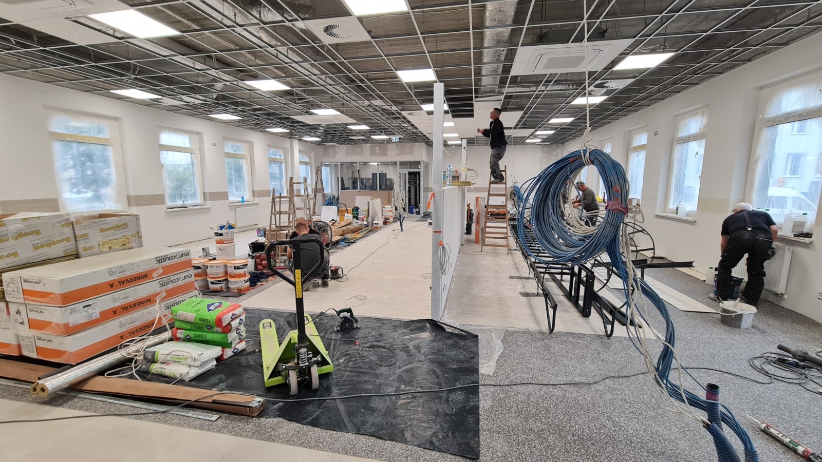 Gotowa jest nowa elewacja budynku. Wybudowano nowy podjazd i miejsca postojowe. Gotowy jest także podjazd dla osób z ograniczoną mobilnością. Trwają prace wewnątrz obiektu